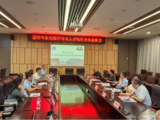 会议伊始,院长陈义安对温涛校长和各位专家的到来表示热烈欢迎,并介绍了学院的整体概况和发展历程、近年来取得的成绩以及发展愿景。副院长龙宪军从人才培养、科学研究、师资队伍、国际合作交流等方面向各位专家汇报了数学学科专业一体化建设的情况。应用数学系主任孙祥凯从专业定位、培养目标、课程设置、毕业要求等方面向各位专家汇报了数学与应用数学专业人才培养方案。