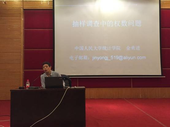 2015年4月27日上午八点半,我院在博智楼7200举行以“抽样调查中的权数问题”为题的专题讲座,并邀请到教育部国家重点研究基地“应用统计科学研究中心”主任、人民大学二级教授、博士生导师、国务院政府特殊津贴获得者金勇进教授为主讲人,我院叶勇副院长主持本次讲座。我院丁宣浩院长、统计系李勇主任、杨炜明副主任,胡桂华老师以及12级统计学专业部分学生也参与了此次讲座。