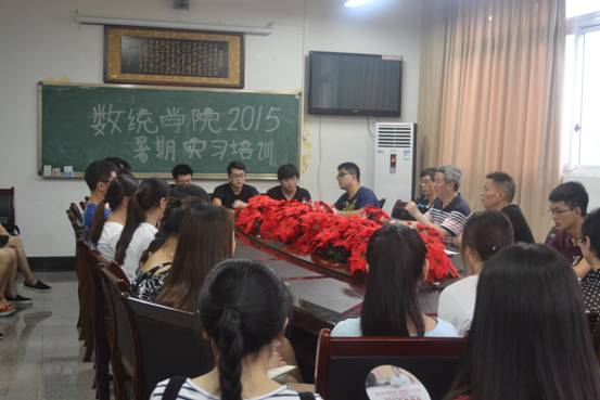 为帮助12级学生在暑期实习前做好充分的准备,以便暑期实习的顺利进行,6月29日下午14:30,我院在慧智楼学院会议室召开了2015年暑期实习培训会,对参加暑期实习的同学们进行了统一培训。数统学院院长丁宣浩教授、党总支副书记易忠教授、副院长叶勇副教授、以及我院分团委书记吴骕騻老师出席了此次会议,近30名12级学生参加了会议。会议由易书记主持。