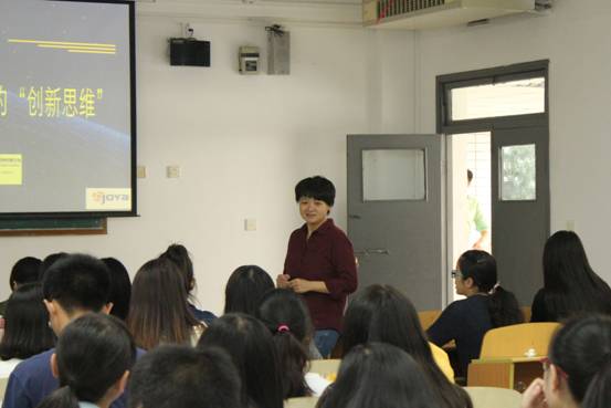 下午的培训由校团委陆嘉老师主讲,她以自己亲身经历来引出主题——“解读学生干部的‘创新思维’”。并从“思维模式”、“心态”及“眼界”三个方面详细阐述了学生干部应具备的素质,并希望学生干部能认真投入自己的工作并从中达到锻炼自己的目的。