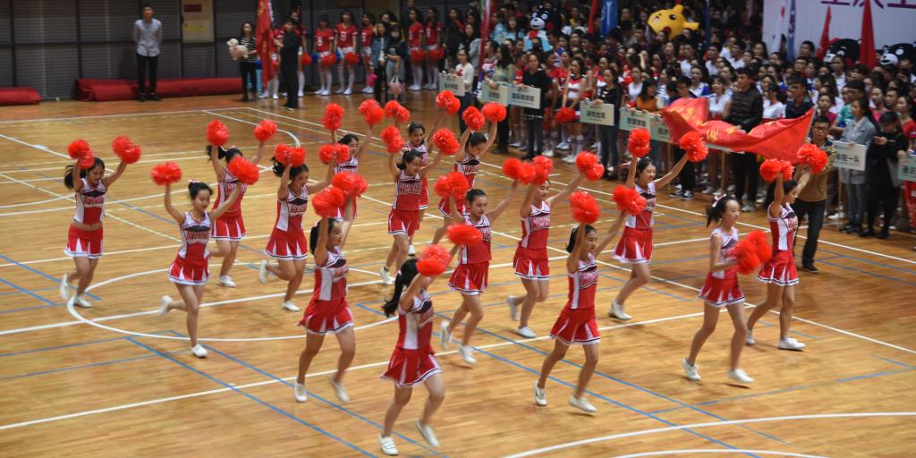青春悦动的“大汇操”拉开了啦啦操比赛的帷幕。紧接着,各代表队依次进行表演,展开激烈斗舞。伴随着热情响亮的口号“青春飞舞,挑战自我,数统之花,绽放光彩”,数统学院派出的16位“数码宝贝”踏着轻快的步伐出场了,她们身着青春热辣的啦啦队服,整齐划一的完成了花球啦啦操的规定动作,更创新的加入了俏皮可爱、激情四射的自选动作,动作铿锵、富有活力,展现了优美动人的身姿和朝气蓬勃的面貌。比赛期间,更有承办方体育学院代表队带来的表演赛为各参赛队伍加油助威。