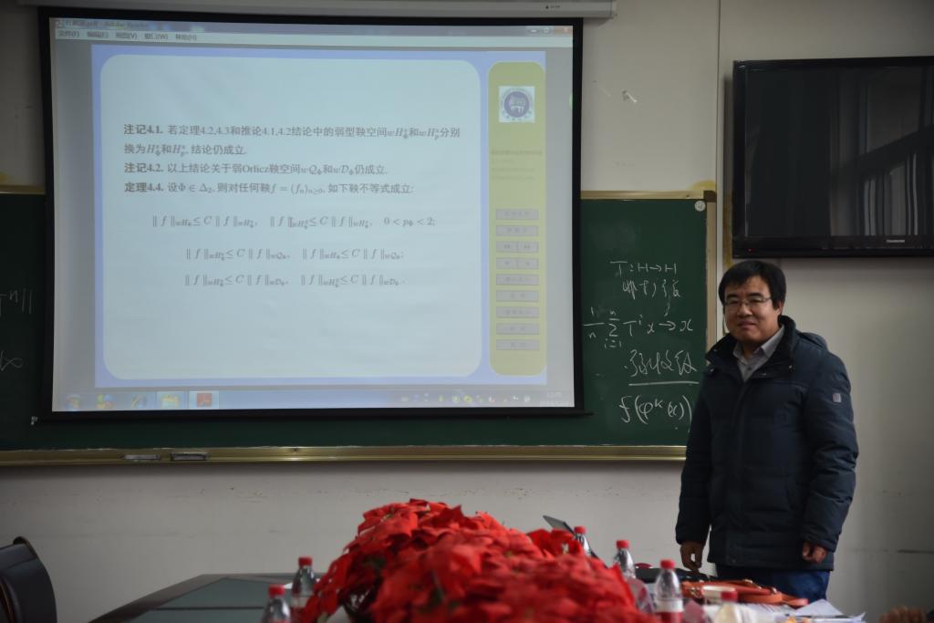 随后,来自天津工业大学的张霞副教授和河南科技大学的任颜波副教授分别做了题为《A characterization for a complete random normed module to be mean ergodic》、《弱Orlicz鞅空间的弱原子分解及其应用》的报告,得到了郭老师的深度点评。从他们的报告和郭老师的点评看出,一篇优秀的科研论文的诞生过程是不容易的,不仅要付出大量辛勤劳动,而且要注重团队合作,密切交流。