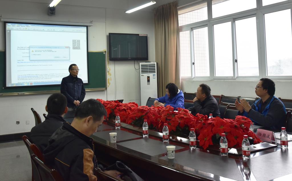 会议开始,由随机度量理论的著名专家、中南大学数统学院的郭铁信教授结合国际上的金融数学家利用条件信息和Riesz表示定理研究动态资产定价的论文做了《随机内积模在动态资产定价中的应用》的报告,深刻而富有启发性。我院袁德美、陈修素、胡桂华等三位教授分别从理论和实际应用等方面提出有独特见解的问题与郭老师进行了活跃交流。郭老师的报告表明国际上对金融的研究从数学理论的应用来看已经达到非常高深的程度,随处可见泛函分析、凸分析、随机分析在其中扮演的重要角色。