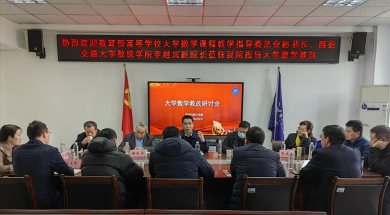 2023年2月6日下午,教育部高等学校大学数学课程教学指导委员会秘书长、西安交通大学数学与统计学院副院长李继成教授受邀到我院指导大学数学课程教学改革。本次研讨会由数学与统计学院院长陈义安教授主持,学校教务处处长骆东奇教授、重庆邮电大学教务处处长胡学刚教授、重庆交通大学、重庆理工大学、重庆科技学院等高校大学数学课程教学分管领导、系部主任等参加了研讨会。