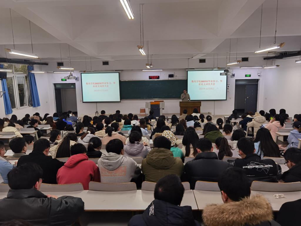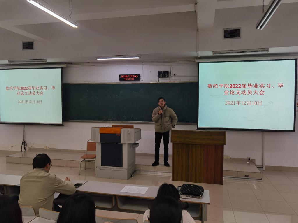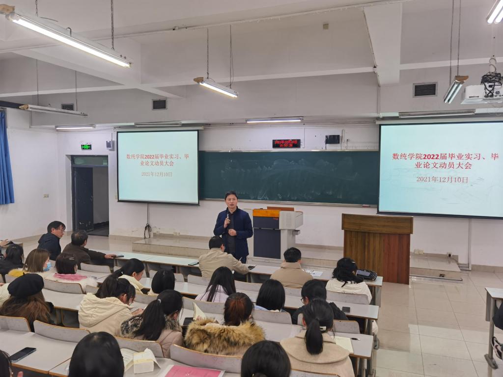 2021年12月10日,数学与统计学院在博智楼7322教室组织召开了“2022届毕业实习和毕业论文工作”动员大会。2022届全体毕业生参加,学院领导、系主任以及毕业班辅导员出席会议并分别做工作安排。