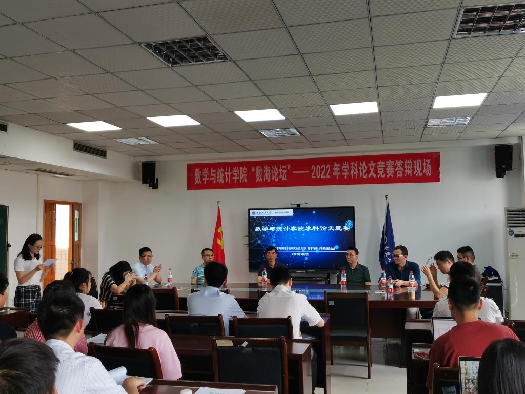 5月6日下午,由数学与统计学院研分会承办的“数海论坛”2022年研究生学科论文竞赛答辩赛在启智楼80602成功落下帷幕。大赛于2021年12月开始启动,历时五个月,有17个团队进入答辩赛。大赛特别邀请了数统学院赵培信教授、孙祥凯教授、孙荣教授、袁利军教授、陈明镜博士、曾勇博士等6名教师担任了此次答辩赛评委。叶勇副院长为本次大赛致辞。
