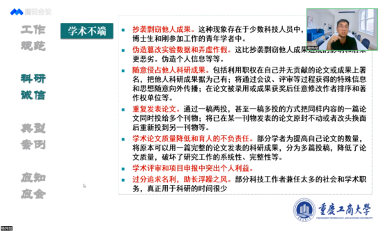 最后着重强调了科研诚信的重要性,并列举了部分学术不端案例,意指科研需要静下心来,要对知识怀有敬畏之心。