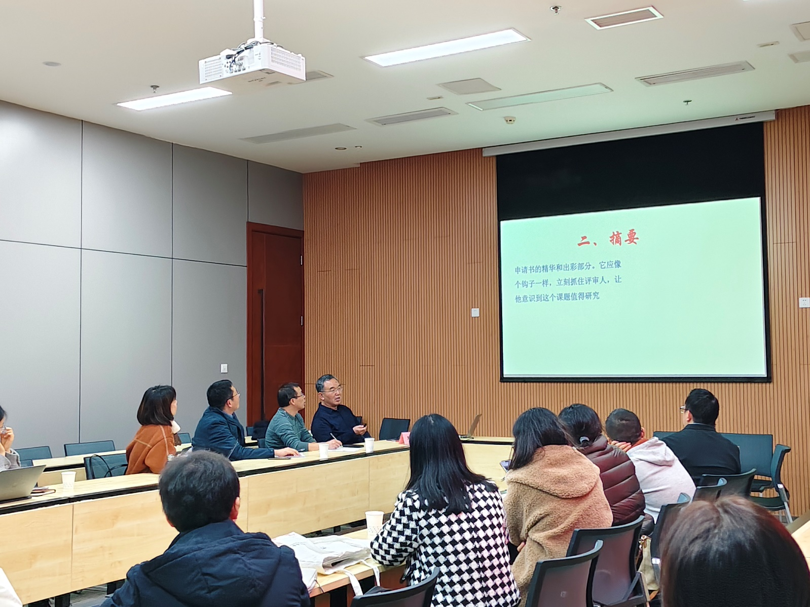 王宜举教授以“国家自然科学基金申请书写作的技巧与要点”为主题,结合自身多次成功申报国家自然科学基金的宝贵经验,对项目选题、研究意义、国内外研究现状、研究内容、研究目标、拟解决的关键问题、研究方案及可行性分析等核心环节,进行了深入剖析并辅以生动案例。他特别建议教师们提前谋划、聚焦选题并夯实工作积累,以撰写出更具竞争力的申请书。报告结束后,王宜举教授还对部分青年博士的申报书进行了细致指导,针对性地提出了宝贵修改建议。