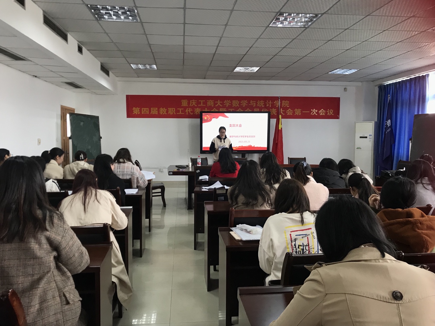 3月22日中午12:00及3月23日中午12:00数统学院学生党支部在学院80602会议室召开支部大会,讨论王红霞等15名党员吸收为预备党员事宜,支部书记郭春霞、组织委员张光云、宣传委员赵娟娟参加了会议。