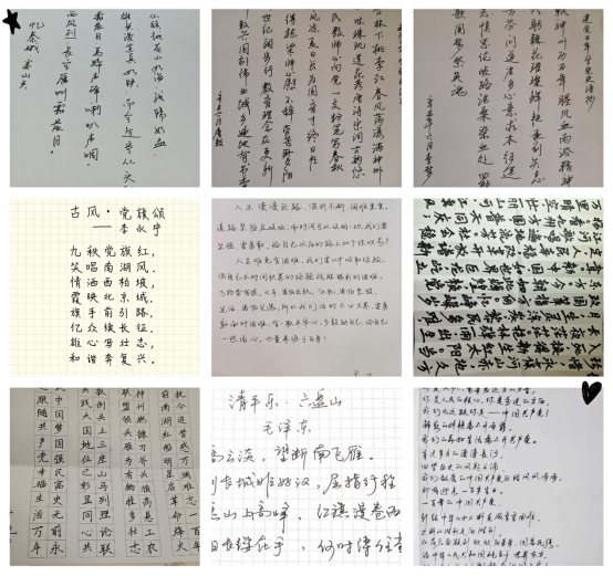 本次比赛为硬笔书法,作品内容聚焦建党100周年主题,通过书法艺术形式,讴歌中国共产党百年来的光荣历史和丰功伟绩,表达数统学院全体教职工对中国共产党百年华诞的美好祝愿。比赛尾声共收到90余份作品。评委们将从主题、书写、艺术观赏等要求进行评选。笔墨镌刻时代印记,笔端展示教师风貌!大家用书法笔韵弘扬中华传统文化,重温党的光辉历程,歌颂党的伟大成就,有助于进一步营造学党史、感党恩的浓厚氛围。