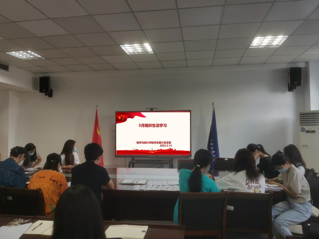 5月13日上午10:00,数学与统计学院学生第三党支部在80602会议室召开支部大会,会议由支部书记郭春霞主持,共57名党员参加。