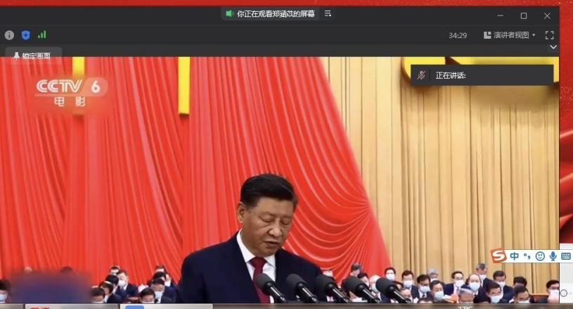 接着,全体党员观看了学习视频,视频中有带着乡亲过上好日子的裴春亮;用匠心守护文化遗产的方勤;用行动诠释医者仁心的徐芙蓉,他们都展示了二十大代表们的风采,还展现了中国文化的自信自强。