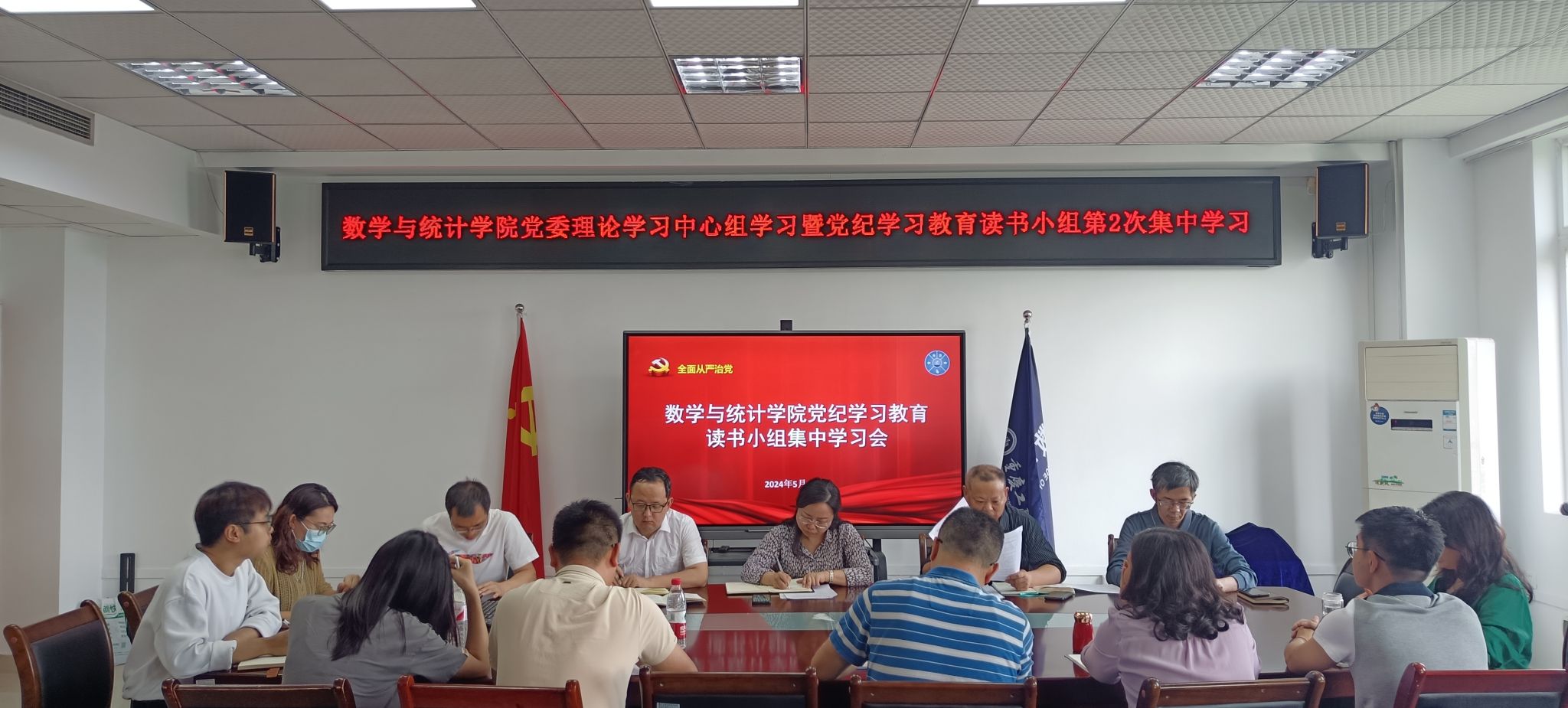 5月14日上午,数学与统计学院开展党委理论学习中心组学习暨党纪学习教育读书小组第2次集体学习会,会议由学院党委书记潘焱主持,读书小组全体成员到场参加。