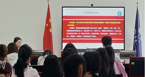 5月17日下午,数学与统计学院党委书记潘焱在启智楼80602会议室给学院近100名入党积极分子讲党纪学习教育专题党课。