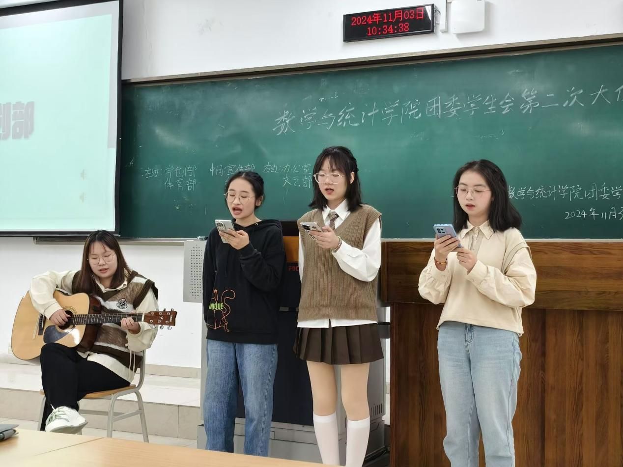2024年11月3日,数学与统计学院团委学生会在博智楼07222教室举行了本学期第二次大例会。此次会议由学生会主席团成员柳旭主持,旨在总结本学期开学以来的工作,并布置接下来学生会的重点工作,进一步增强团队的凝聚力。