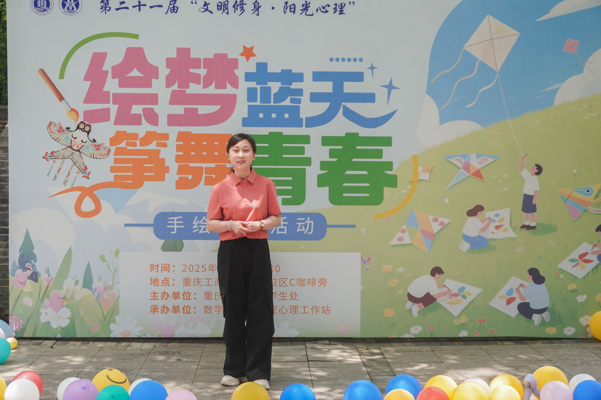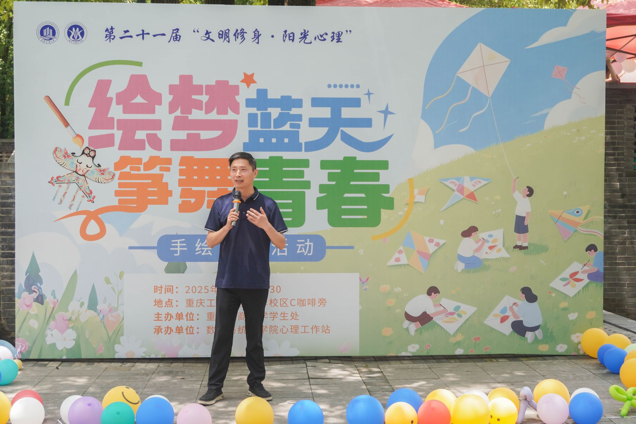 活动伊始,主持人详细介绍了活动目的,林璐在致辞中鼓励同学们通过色彩表达自我,将困扰心中的迷茫、焦虑随风筝一起放飞。随后,党委书记张朝毅宣布活动开幕。