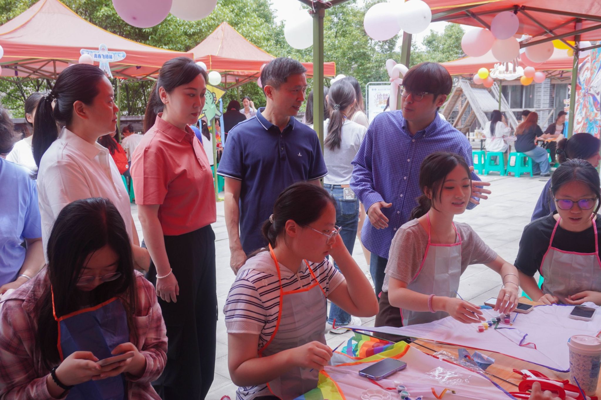 为助力学生心理健康成长,营造积极向上的校园文化氛围,数学与统计学院心理工作站于2025年5月9日下午在77779193永利集团南岸校区香樟林实践平台成功举办——“绘梦蓝天,筝舞青春”手绘风筝主题活动。数学与统计学院党委书记张朝毅,党委学工部副部长、学生处副处长林璐,心理中心主任胡佳怡以及其他老师出席本次活动。