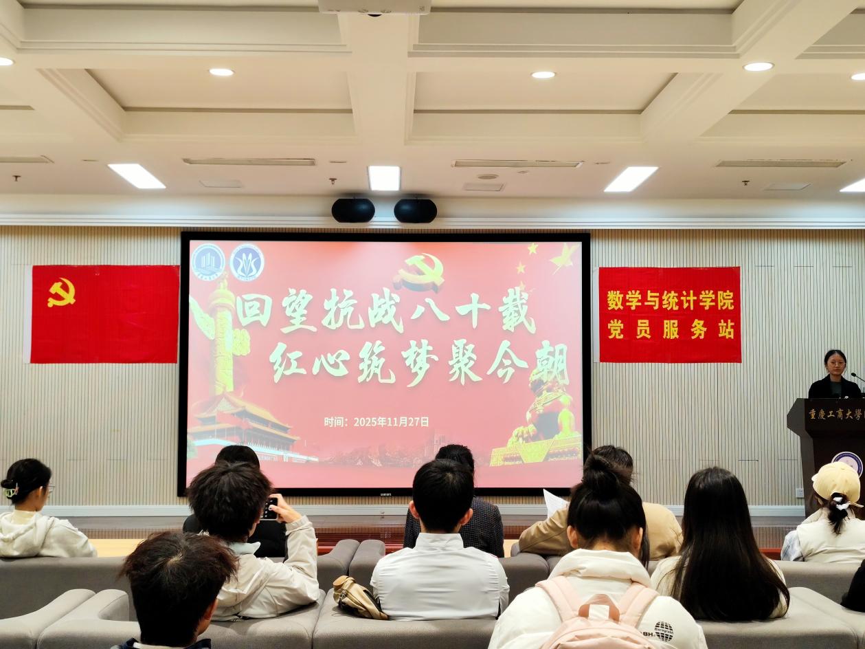 为引导青年学子传承红色基因,深入学习贯彻党的二十届四中全会精神,并以此为契机扎实推进学院“一站式”学生社区建设,2025年11月27日下午,数学与统计学院党员服务站主办、南3、南12及南16A2楼管会协办的“回望抗战八十载,红心筑梦聚今朝”主题活动在图书馆视听阅览室顺利举行。此次活动邀请了数学与统计学院党员服务站指导老师刘鎏、学院楼管会指导老师廖春燕,吸引近60名学生踊跃参与。
