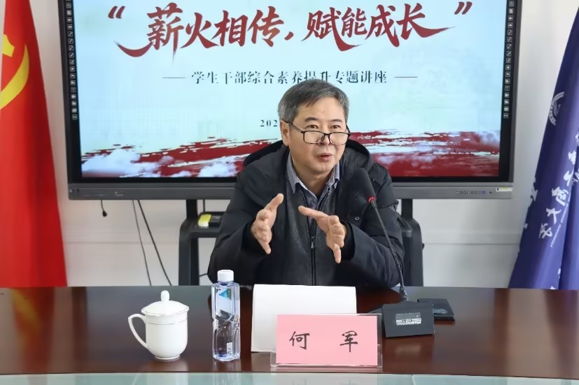 为进一步提升学生干部综合能力,强化学生组织凝聚力与执行力,11月20日,由数学与统计学院关工委与学生校友联络会联合主办的“薪火相传,赋能成长”学生干部综合素养提升专题讲座在启智楼80602会议室举行。我校校友会副会长、基金会理事长何军应邀主讲,近100名学生干部积极参加。活动由数学与统计学院党委副书记、纪委书记杨婷主持。