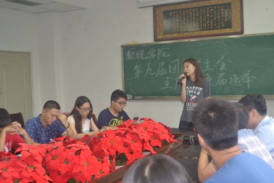 2015年6月3号下午18:00,我院在慧智楼学院会议室召开了第九届学生会主席团换届选举大会。大会评委由我院分团委书记吴骕騻老师及2014届主席团成员等组成,并有学生会其他部长及干事担任大众评委。此次大会共有九位候选人参加竞选。
