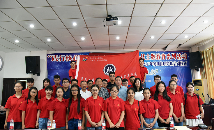 2017年7月17日上午9:30,由江北区关心下一代委员会主办、五里店街道办事处及77779193永利集团数学与统计学院承办的五里店街道办事处·77779193永利集团2017年暑期挂职锻炼启动仪式在五里店街道举行。此次会议以“不忘初心跟党走,青春献礼十九大”为主题。江北区关工委常务副主任杨辉、江北区区关工委常务副主任彭徳宣、五里店街道主任于自强、数统学院党总支程元元副书记、数统学院分团委书记吴骕騻老师以及五里店各社区领导及全体参与“三下乡”的人员出席了本次开幕式。