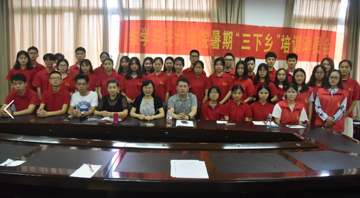 为深入学习贯彻习近平新时代中国特色社会主义思想和党的十九大精神,引领教育广大青年学生勇做担当民族复兴大任的时代新人,在社会实践中受教育、长才干、作贡献,以青春建功的实际行动,为实现中华民族伟大复兴中国梦贡献青春力量。为确保我院“三下乡”暑假实践活动的顺利开展,增强同学们的安全意识,2018年7月13日下午14:00,我院在慧智楼510会议室召开了2018年暑期“三下乡”的动员培训大会。党总支书记喻永红副教授、党总支程元元副书记、分团委书记余思云老师以及第十一届数统学院分团委学生会副书记胡潇出席了此次会议,全体“三下乡”志愿者参加了此次的会议。