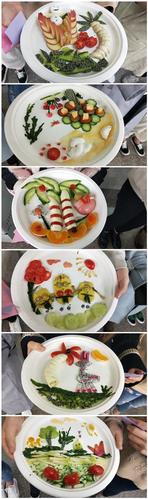随后,每个队伍将她们的作品进行了展示,向大家介绍了水果拼盘名字以及各自创作的灵感。同学们进行现场投票,将自己手中宝贵的一票投给了她们心目中的第一名。