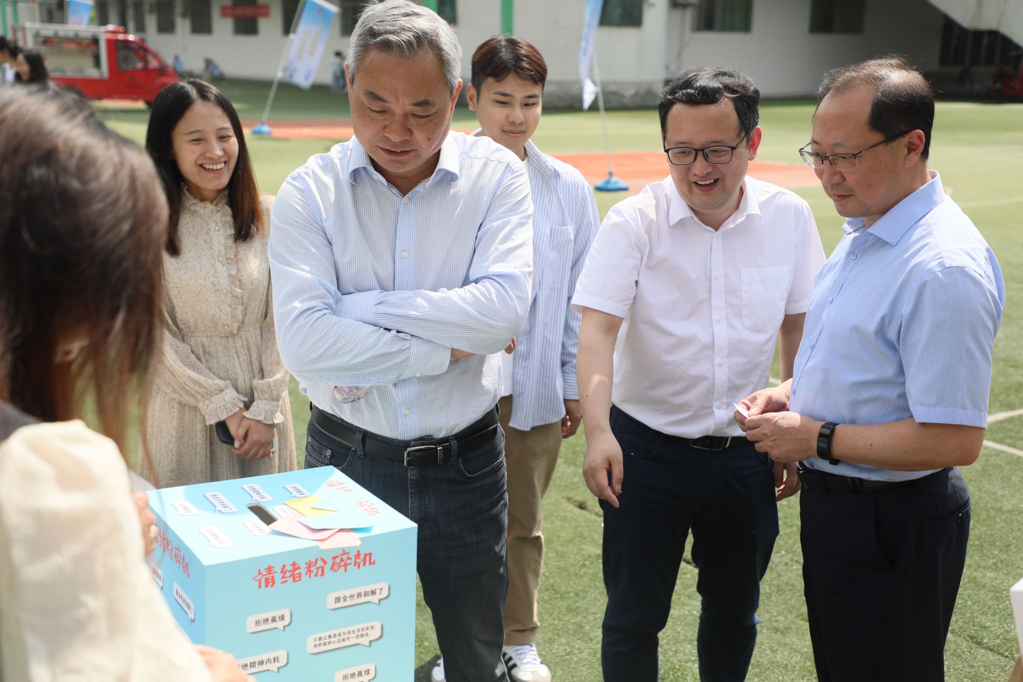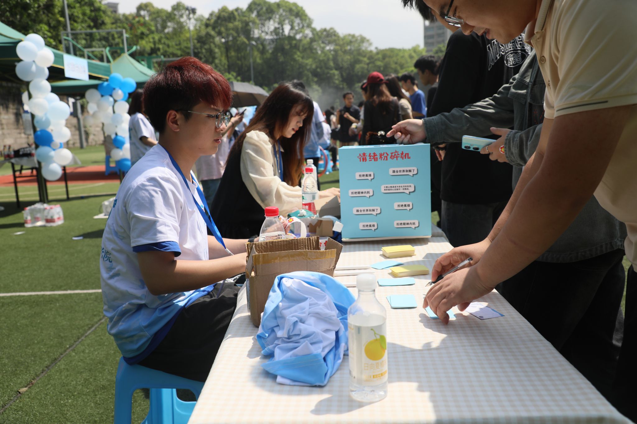 在心理研学社,同学们通过情绪回收卡,将烦恼、疑惑、焦虑等消极情绪倾泻而出,随后将这些情绪粉碎,象征着告别压力与不快,迎接新的开始。