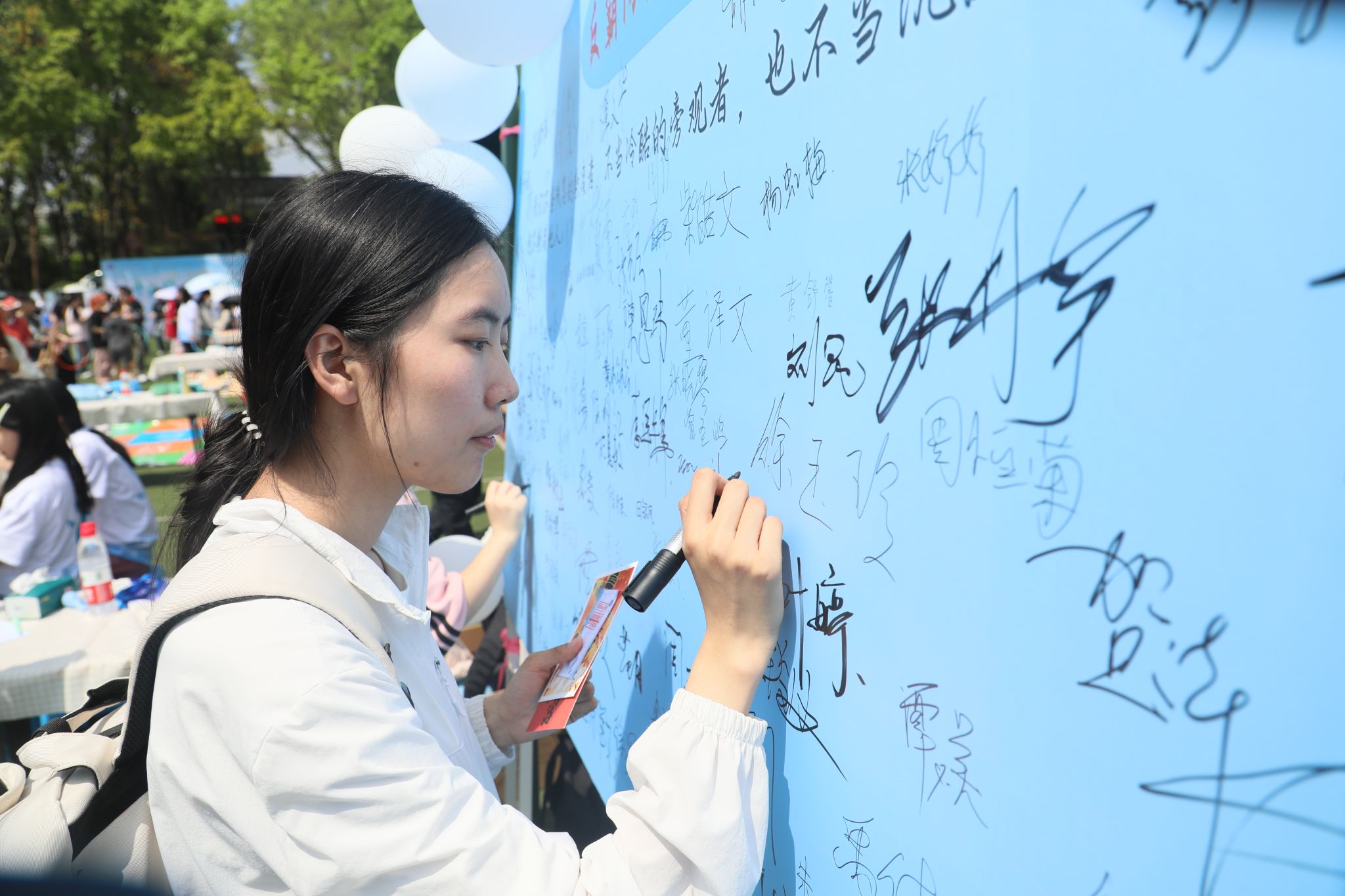 在反霸防欺墙,同学们用温暖的话语传递爱心,同时也在墙上郑重签下自己的承诺和姓名,共同营造一个无霸凌的校园环境。