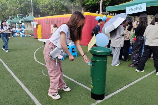 平安邮局则让同学们将所学的安全技能和法律知识写在卡片上,投递到“平安邮筒”,将平安与健康传递给远方的亲朋好友。