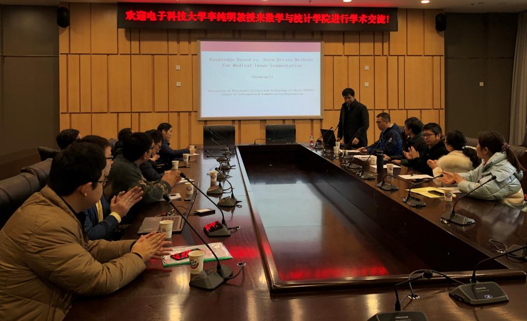 2019年12月25日上午,电子科技大学李纯明教授在主校区图书馆第五会议室做了题为“基于知识的数学建模与数据驱动的医学图像分割方法”的学术报告。此次报告由数学与统计学院副院长龙宪军教授主持,我院部分老师参与此会,甚至外校老师也慕名而来。