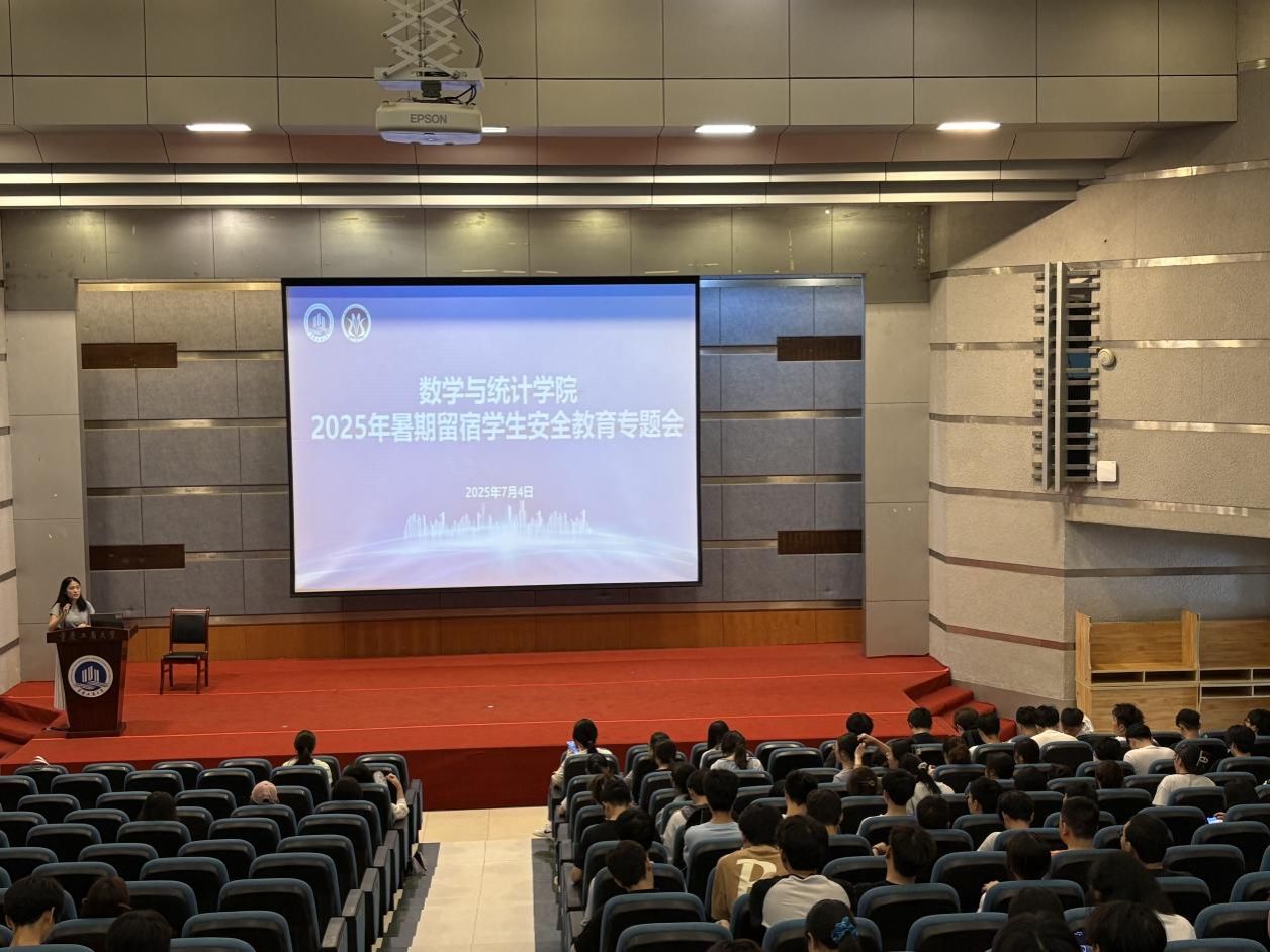 7月4日,数学与统计学院在博智楼7100报告厅召开2025年暑期留宿学生安全教育专题会。会议由学院公寓专项负责老师廖春燕主持,全体申请暑期留宿的本科生及研一学生参加了会议。