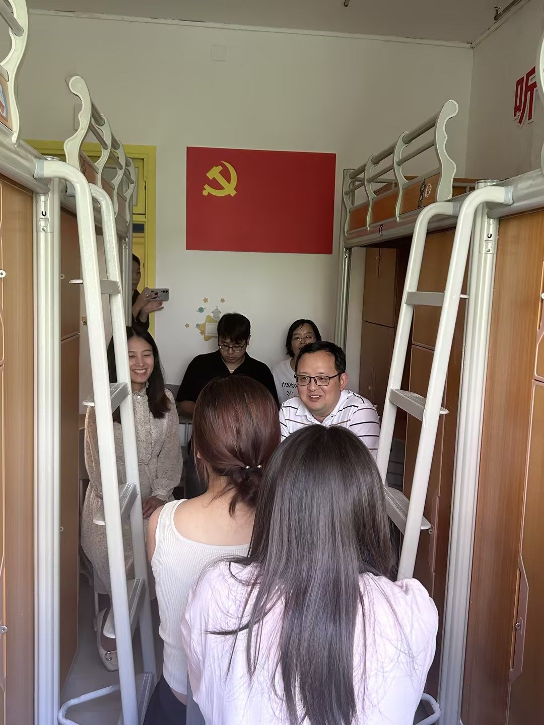 6月6日下午,数学与统计学院党委副书记吉杲带领辅导员张光云、廖春燕、刘鎏一行深入学生寝室,与“一站式”社区党支部活动室的值班学生干部进行亲切的交流,并随后组织开展了别开生面的“数”说清廉之“廉洁故事分享会”。
