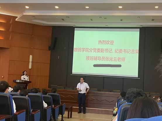 2023年6月30日下午,一场简单而热烈的交接仪式在江北校区宏智楼509报告厅举行,数学与统计学院党委副书记吉杲、2022级辅导员张光云代表学院到通识学院迎接2022级数统学子结束一年的通识教育后“回家”。