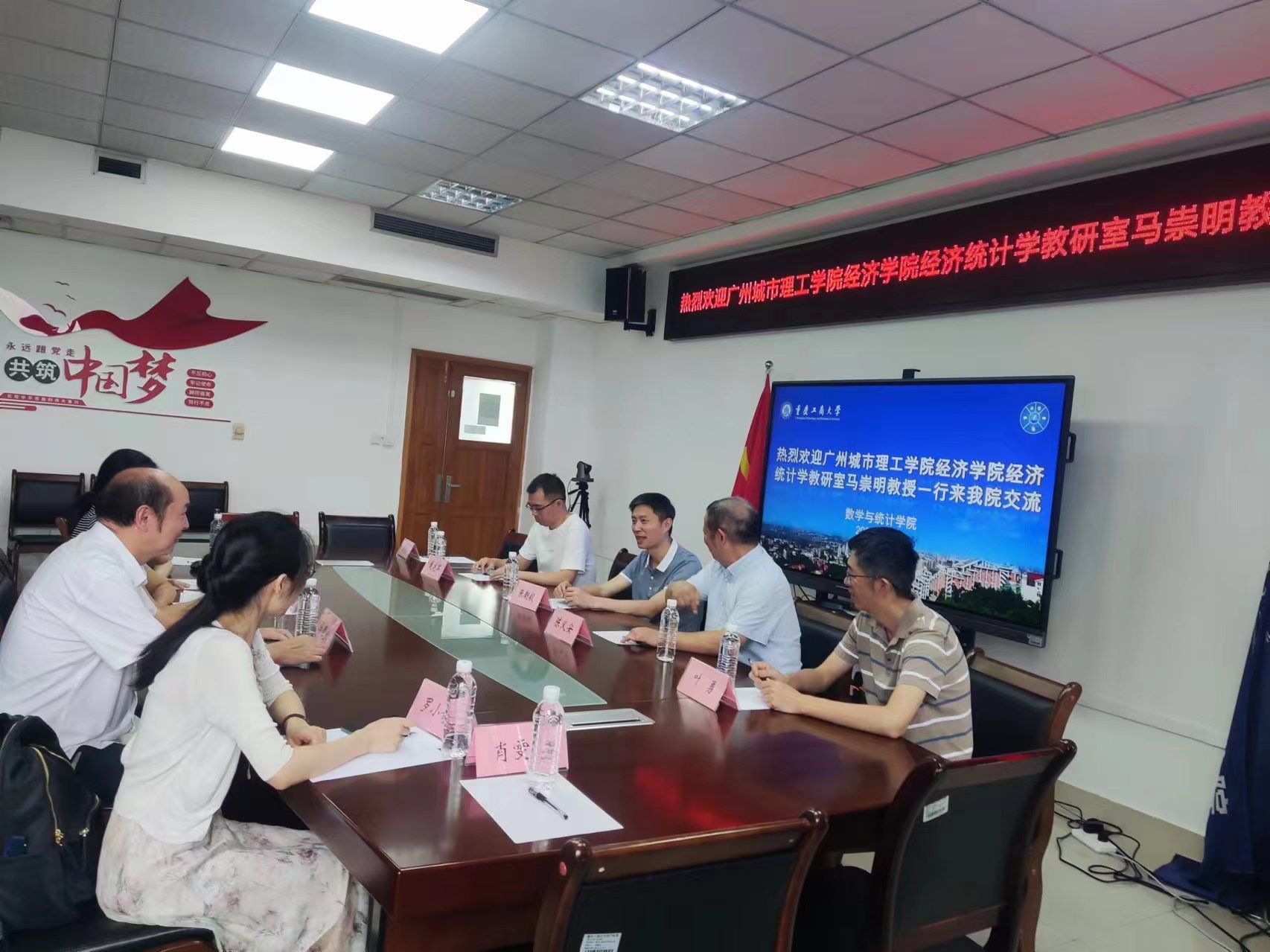 2024年7月1日,广州城市理工学院经济学院经济统计学教研室主任马崇明教授、副主任丁慧一行来我院访问交流。学院张朝毅书记、陈义安院长、叶勇副院长、龙宪军副院长出席了交流会。