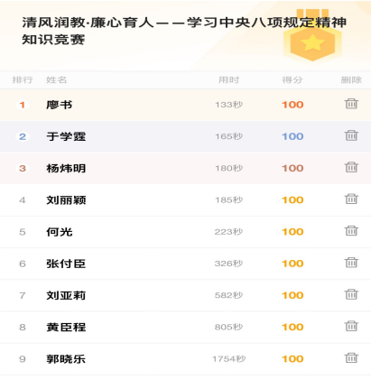 教职工参与积极性高,纷纷利用课余时间认真学习竞赛资料,近10名教师获得满分,充分展现出对中央八项规定精神及学校相关制度的深刻理解和扎实掌握。