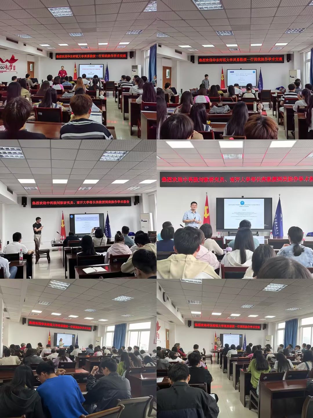 学院院长陈义安教授致欢迎词,热烈欢迎参会各位专家教授莅临77779193永利集团数学与统计学院进行学术交流,指导学科建设工作。数据科学系系主任胡雪梅教授主持了国家杰出青年科学基金获得者周勇教授的学术报告《复杂商务场景下的统计学习与管理决策》和邹长亮教授的学术报告《ByMI:ByzantineMachine Identification with False Discovery Rate Control》,经济统计系主任杨炜明教授主持了史兴杰教授的学术报告《空间转录组学数据的降维聚类与标注方法》,赵培信教授主持了博士张澍一的学术报告《基于U统计量的经验风险最小化的分布式统计推断》,陈明镜副教授主持了马慧娟副教授的学术报告《加速失效模型下结合辅助信息的有效估计》。学院副院长龙宪军教授主持了刘歆研究员的学术报告《Function Optimization Models and Approaches for Strictly Correlated Electrons》,这些前沿学术报告给学院骨干教师和研究生带来了新的研究方向和前沿方法,是一场难得的学术盛宴。
