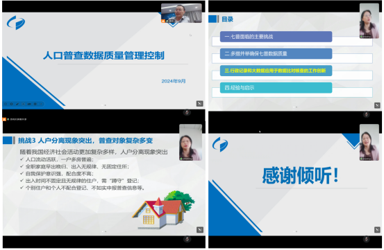 他还向大家介绍了行政记录和大数据应用于数据比对核查的工作创新,将身份号码纳入指标体系,为普查数据与行政记录数据进行比对以及数据排重提供了基础,这些创新做法为老师们提供了研究新思路。