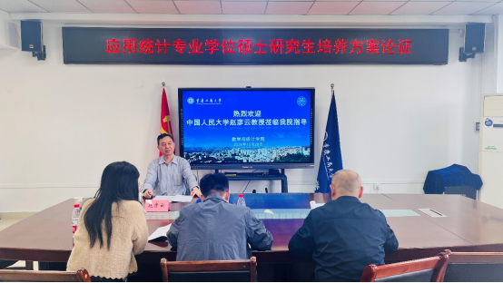 陈义安院长对赵彦云教授到校指导学科建设表示感谢。他介绍了目前我校统计学科在人才培养、师资队伍、科学研究等方面的基本情况,并汇报了应用统计专业硕士学位点建设情况及存在的问题。