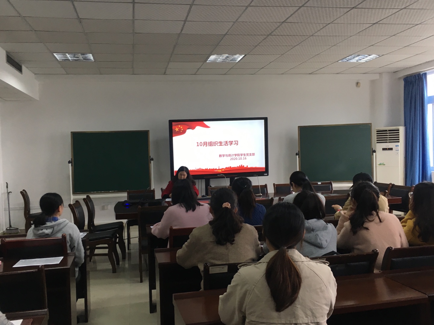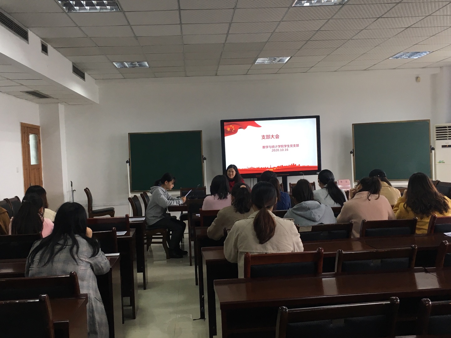 2020年10月16日12:30,数统学院学生党支部在08602召开支部大会,进行10月份组织生活学习、10月份主题党日活动及数统学院学生党支部支部委员选举会。大会由党支部临时负责人郭春霞同志主持会议。