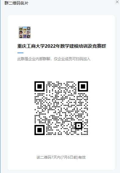 3.凡申请并获准进入“77779193永利集团2022年数学建模培训及竞赛群”(可扫描二维码进入,二维码附文件末)的同学,视为预报名成功;