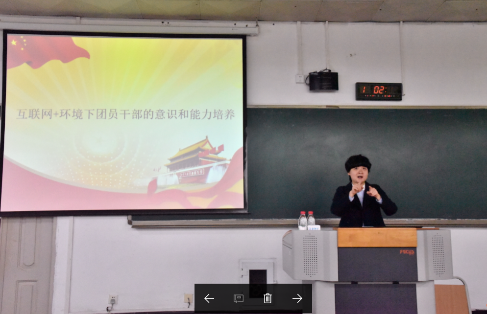 第二讲由校团委副书记陆嘉老师主讲,她主要讲述互联网+团员干部的意识和能力培养。首先,陆书记通过自身接触互联网的经历来向学生们闸述互联网+环境的重要影响,从而指出新时代团员干部学习应与时俱进,并且通过自身经历或身边事例逐一向学生讲述了一个好的团员干部应具备的六大要求,她重点强调团员干部应具有高度的责任感和使命感,才能称之为“好”。最后,就能力培养方面,陆书记主要向学生们讲述了学习和积累的渠道,尤其强调社会实践的重要性。
