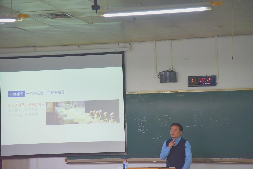 此次讲座分为三讲,第一讲由学院总支书记喻永红书记主讲,她重点讲解三个一.何为学生干部;二.部分学生干部存在的问题;三.如何做一名合格的学生干部。对于第一方面喻永红书记强调学生干部首要任务是学习,其次才是干部工作。第二方面喻永红书记提出了部分学生干部存在的问题,如学生意识不够、责任意识不够、表率意识不够、创新意识不够等并加以纠正。最后喻永红书记重点讲述了如何做一名合格的学生干部,要求同学们要努力提高自身思想政治素质,要具备高度工作责任感及具有服务意识和奉献精神,要在工作、学习和生活中起模范作用,要妥善处理好学习与工作的关系,要建立并维护和谐的人际关系等。