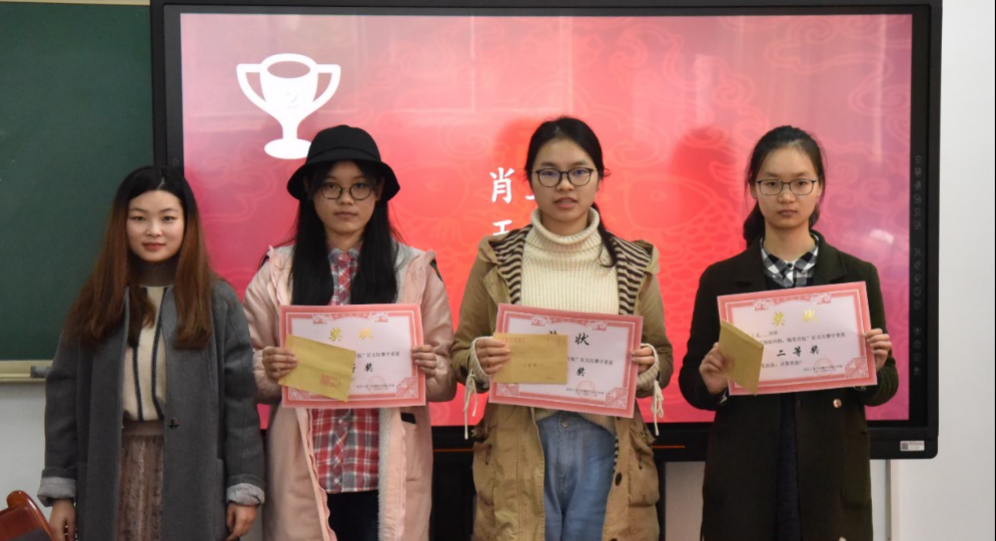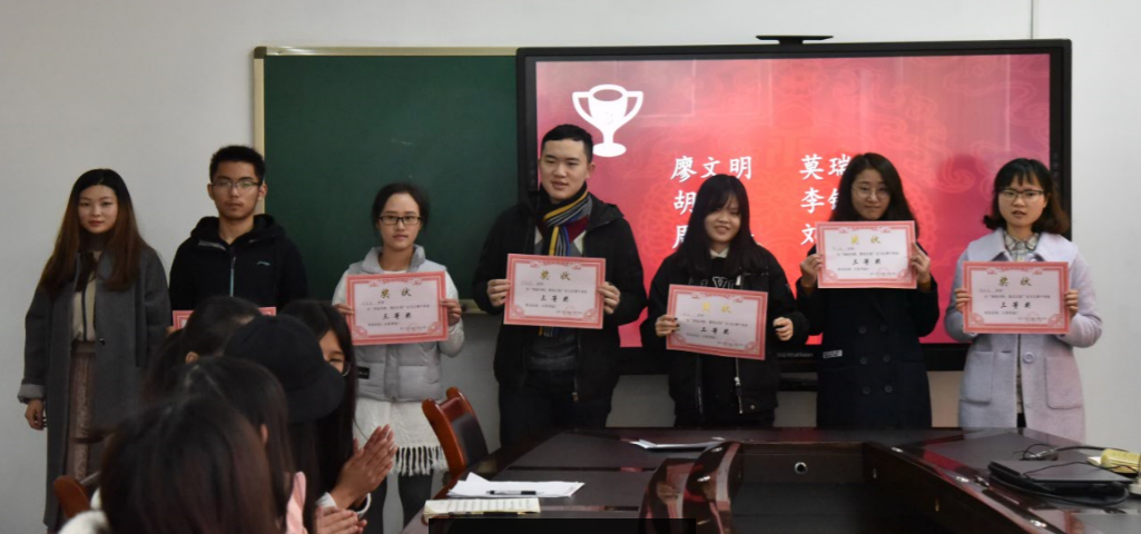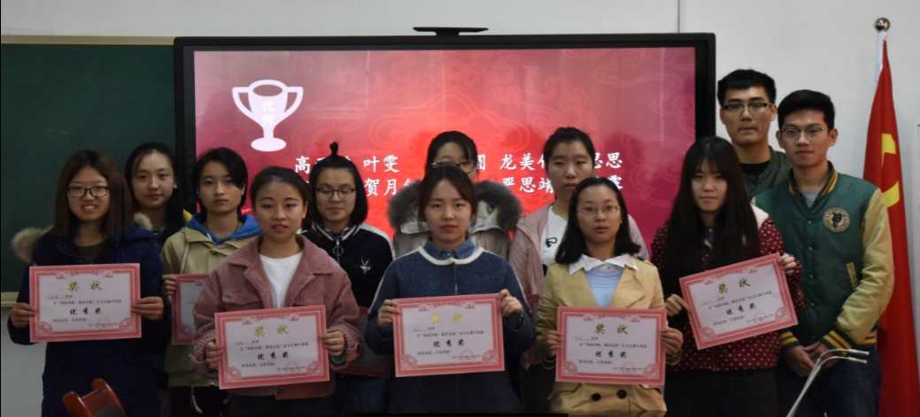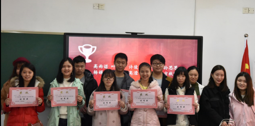 首先,余老师为此次活动致辞。余老师讲述了举办十九大征文比赛的初衷并鼓励学生积极参与各类活动,希望同学们在活动中发现自我,提升自我,展示自我。余老师表示学院隆重举行颁奖仪式是对表现突出同学予以嘉奖并希望他们能把正能量带给其他同学。紧接着,活动负责部门代表,学习部副部长毛晓慧为此次活动做总结,毛晓慧提出此次征文比赛总共收到了来自数统学院各年级各班70余篇投稿,稿件的内容真诚丰富,多角度,多层次展现了投稿人对十九大会议内容的理解。随后进入颁奖仪式。本次征文比赛中张坤同学获得一等奖;肖亚利、王沼澧、郭善获得二等奖;廖文明、莫瑞菲等六名同学获得三等奖以及骆宁等20名同学获得优秀奖。