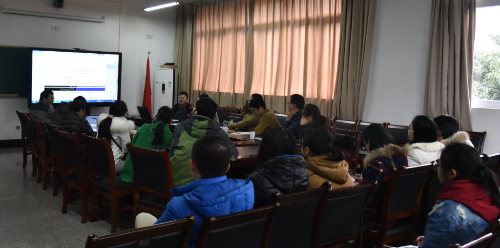 此次研讨会共包括四个报告内容。重庆理工大学刘峰教授首先开始了题为《Empirial likelihood based diagnostics for heteroscedasticity in semiparametric varying-coefficient partially linear errors-in-variables models》的报告,他讲了辨析式模型、部分线性EV模型等在经济学中的应用并就“正态分布”“残差”、“异方差”等与参会老师进行了激烈的讨论。紧接着我院胡雪梅教授开始了第二场报告《Semi-parametric inference for semi-varying coefficient panel data model with individual effects》,她针对高维数据讲解了半参数随机、固定效应和模型并引入了转换方法。短暂休息后,重庆大学的李曼曼教授开始了题为《Two Optimization Problems in a spectrally negative Levy risk model with regulation》的报告。她介绍了Levy算子和变量替换方法在复杂计算过程中的使用,并就报告中出现的“停时”是否具有规律性与参会老师进行了探讨。最后重庆大学的周国立教授开始了第四场报告《Random attractor for the 3D viscous primitive equations driven by fractional oises》,他从背景、已知结果如2008的“Guo and Huang”以及自己的结果进行了分析讲解。