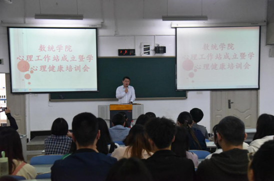 为加强学院学生心理健康工作力度,落实学校关于在学院设置心理工作站的具体要求,提升心理委员和寝室室长识别和应对常见心理问题的能力,2019年5月21日中午12:30数统学院心理工作站成立仪式暨心理健康培训会在慧智楼90308举行。会议由吴卫老师主持,校心理咨询中心副主任胡佳怡、学院党总支副书记程元元、分团委书记余思云及16级、17级各班心理委员及寝室室长参加会议。