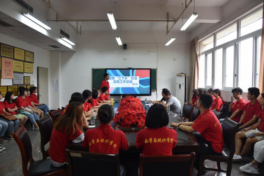 9月24日中午,数统学院2019年暑期“三下乡”社会实践总结大会在慧智楼90510会议室召开。学院党总支程元元副书记、分团委书记吴卫老师以及参加暑期“三下乡”的全体同学参加了会议。