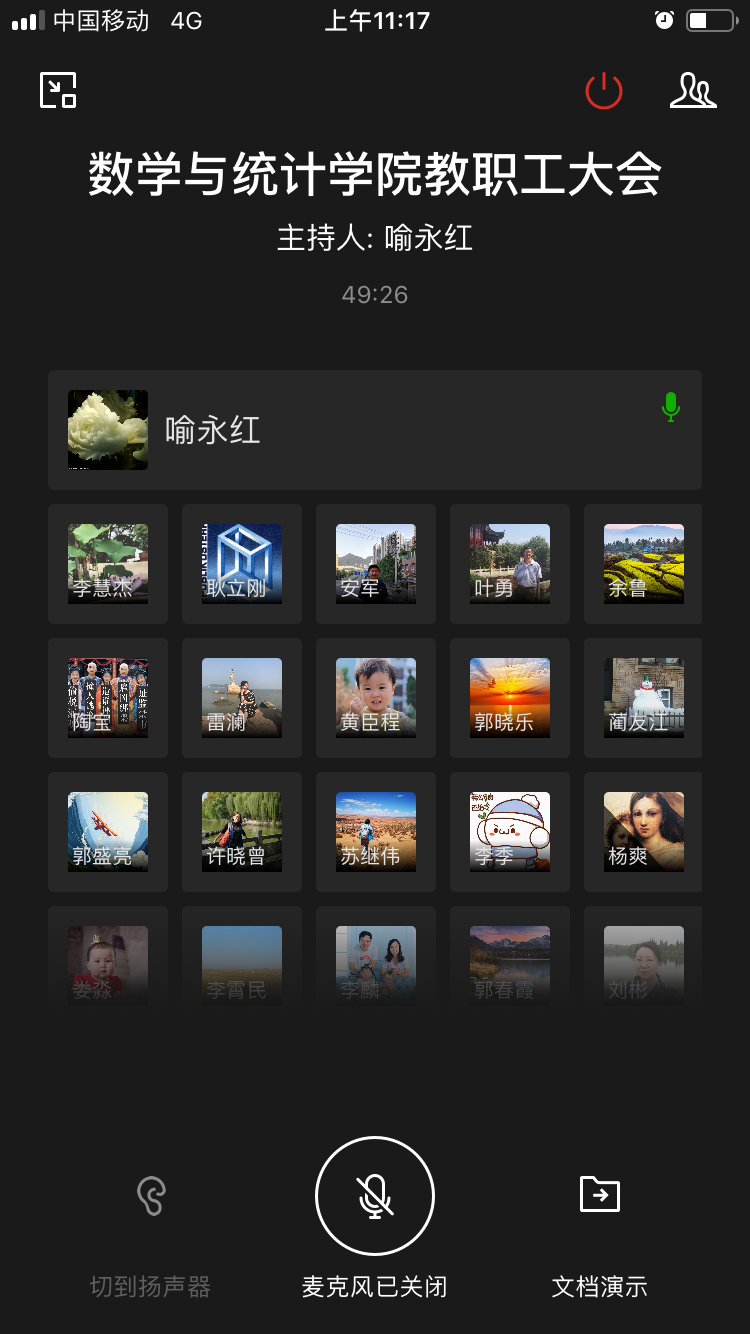 为做好疫情防控工作,部署新学期开学准备工作,数统学院积极响应学校“停课不停教、停课不停学、停课不停工”号召,于 2月26日上午召开全体教职工在线工作会议,对学院新学期开学以后的疫情防控、教学工作、学科建设、科学研究、学生管理、师德师风及意识形态工作等进行了细致梳理与布置,会议由喻永红书记主持,学院全体教职工在线参加了会议。