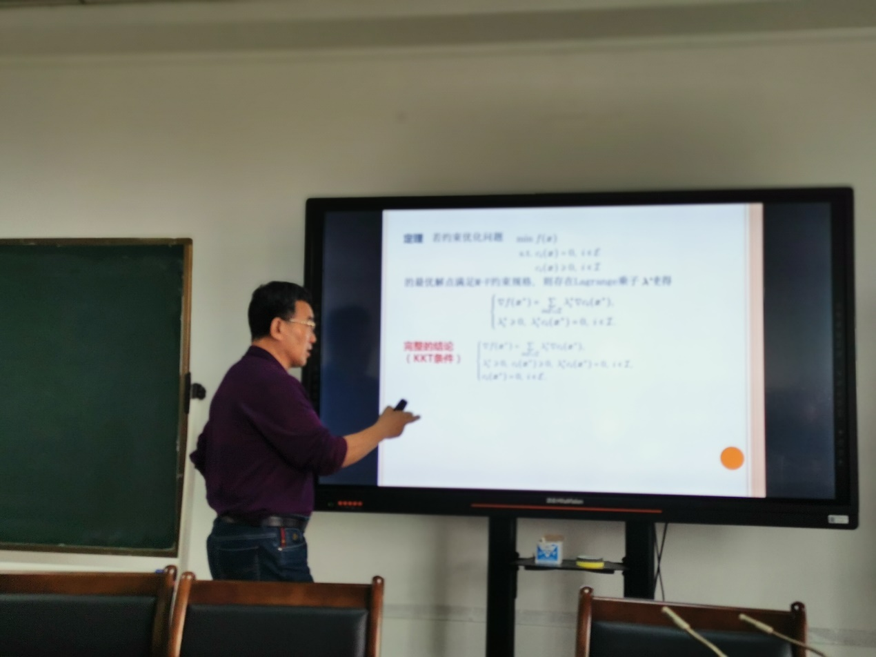 2021年4月21日下午,曲阜师范大学管理学院院长王宜举教授莅临我院学术交流,并在80602会议室做了题为《约束优化问题的最优性条件探析》的学术报告。本次报告由学院副院长龙宪军教授主持,学院部分老师以及研究生参加了此次学术交流。