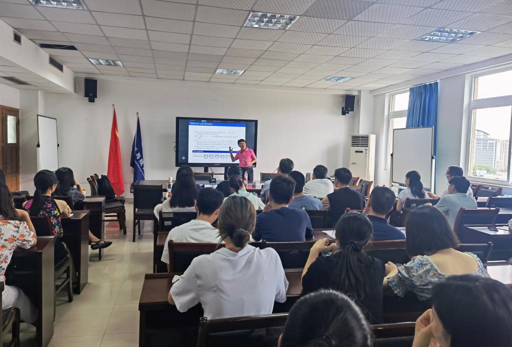 唐教授首先介绍了传统的变量选择方法,接着介绍了惩罚方法和特征筛查等超高维变量选择方法,并对信号较弱且噪音变量较多的超高维问题提出了稳健多重检验方法:通过将连续变量转化成列联表,利用卡方分布的生存函数代替尾部概率,借助样本分位数建立了Pearson卡方检验统计量,建立了虚假发现比估计方法,应用独立删查方法选择重要变量,发展了稳健多重检验统计量和虚假发现比估计的渐近理论,还对对多家股市上市公司的回报作了基于分位数相关的变量选择实证研究。唐教授的精彩报告给与会师生带来新的研究方法和研究思路,激发了青年学子积极从事高水平统计研究的热情。最后唐教授和青年师生分享了教书育人、学生培养和论文写作等方面的成功经验和心得体会,尤其是在高质量论文发表方面提供了非常好的建议,与会师生纷纷表示受益匪浅。